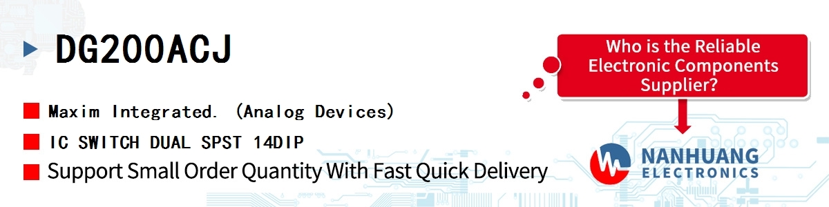 - DG200ACJ Maxim Integrated, IC SWITCH DUAL SPST 14DIP, Integrated Circuits (ICs)~Interface - Analog Switches, Multiplexers, Demultiplexers