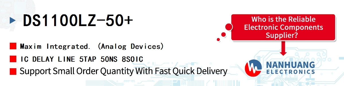 - DS1100LZ-50 Maxim Integrated, IC DELAY LINE 5TAP 50NS 8SOIC, Integrated Circuits (ICs)~Clock-Timing - Delay Lines