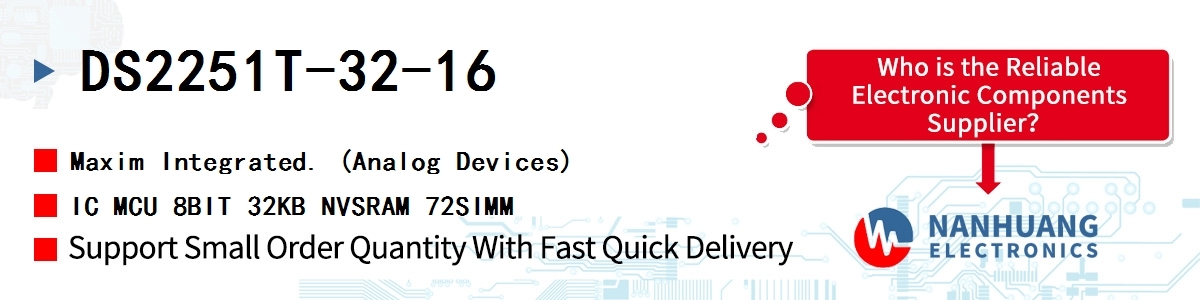- DS2251T-32-16# Maxim Integrated, IC MCU 8BIT 32KB NVSRAM 72SIMM, Integrated Circuits (ICs)~Embedded - Microcontrollers
