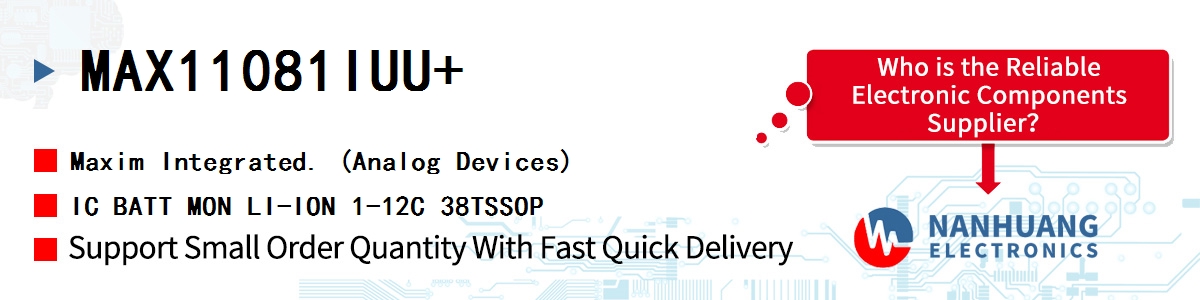 - MAX11081IUU+ Maxim Integrated, IC BATT MON LI-ION 1-12C 38TSSOP, Integrated Circuits (ICs)~PMIC - Battery Management