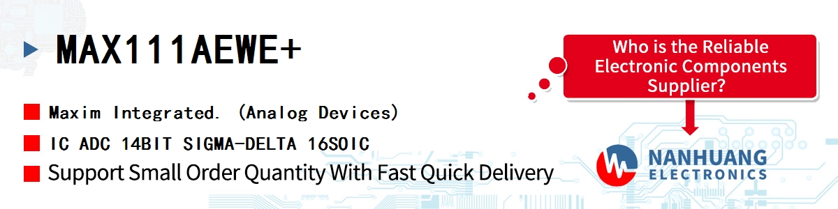 - MAX111AEWE+ Maxim Integrated, IC ADC 14BIT SIGMA-DELTA 16SOIC, Integrated Circuits (ICs)~Data Acquisition - Analog to Digital Converters (ADC)