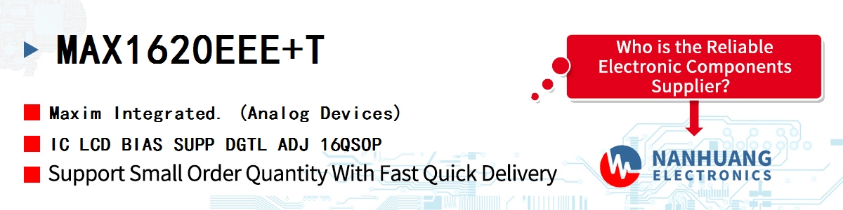 - MAX1620EEE+T Maxim Integrated, IC LCD BIAS SUPP DGTL ADJ 16QSOP, Integrated Circuits (ICs)~PMIC - Power Management - Specialized