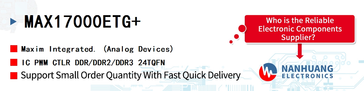 - MAX17000ETG+ Maxim Integrated, IC PWM CTLR DDR/DDR2/DDR3 24TQFN, Integrated Circuits (ICs)~PMIC - Power Management - Specialized