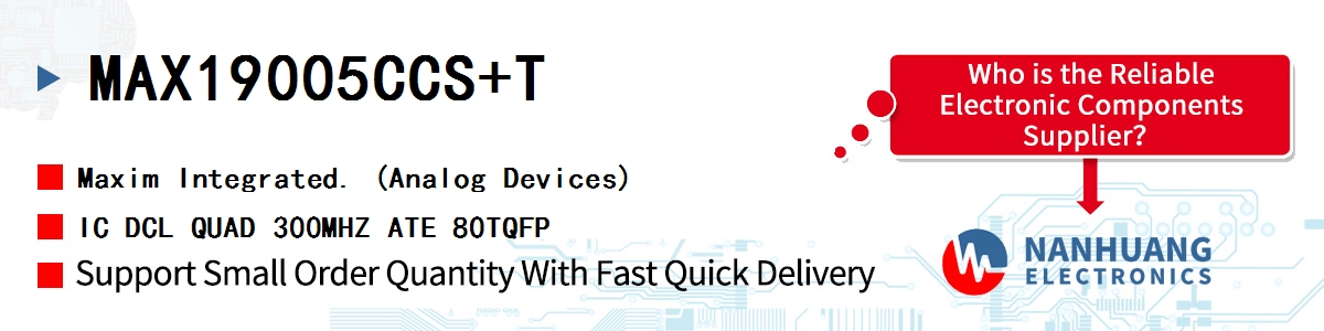 - MAX19005CCS+T Maxim Integrated, IC DCL QUAD 300MHZ ATE 80TQFP, Integrated Circuits (ICs)~Logic - Specialty Logic