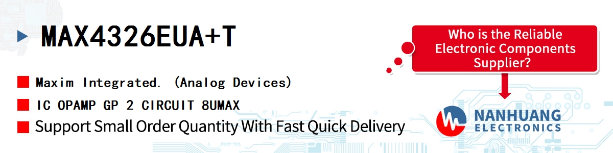 - MAX4326EUA+T Maxim Integrated, IC OPAMP GP 2 CIRCUIT 8UMAX, Integrated Circuits (ICs)~Linear - Amplifiers - Instrumentation, OP Amps, Buffer Amps