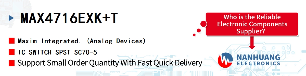 - MAX4716EXK+T Maxim Integrated, IC SWITCH SPST SC70-5, Integrated Circuits (ICs)~Interface - Analog Switches, Multiplexers, Demultiplexers