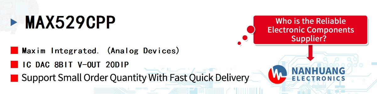- MAX529CPP+ Maxim Integrated, IC DAC 8BIT V-OUT 20DIP, Integrated Circuits (ICs)~Data Acquisition - Digital to Analog Converters (DAC)