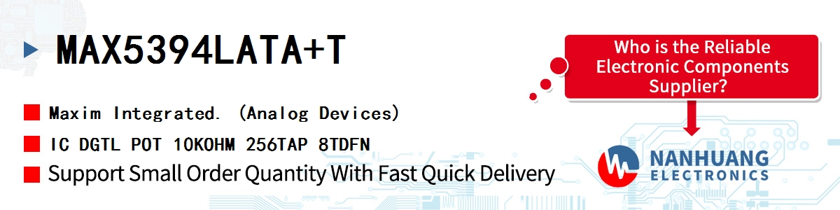 - MAX5394LATA+T Maxim Integrated, IC DGTL POT 10KOHM 256TAP 8TDFN, Integrated Circuits (ICs)~Data Acquisition - Digital Potentiometers