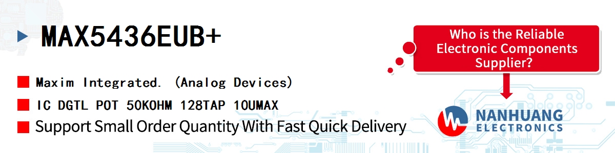 - MAX5436EUB+ Maxim Integrated, IC DGTL POT 50KOHM 128TAP 10UMAX, Integrated Circuits (ICs)~Data Acquisition - Digital Potentiometers