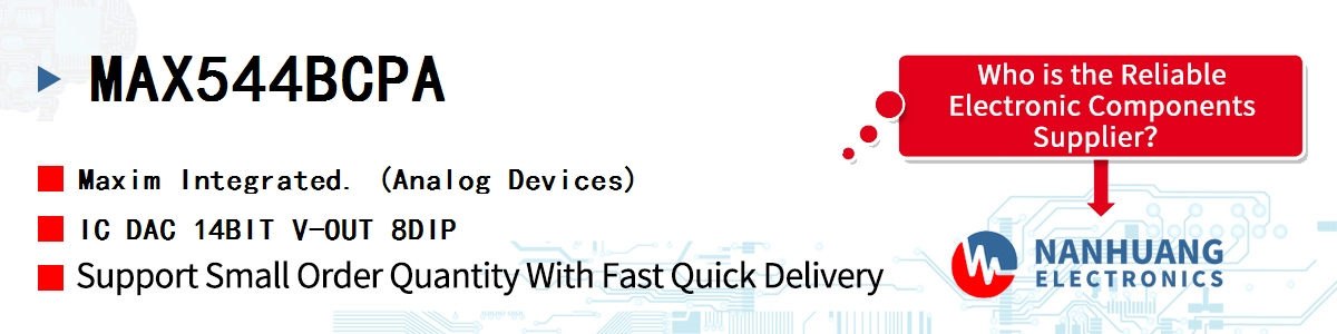 - MAX544BCPA Maxim Integrated, IC DAC 14BIT V-OUT 8DIP, Integrated Circuits (ICs)~Data Acquisition - Digital to Analog Converters (DAC)