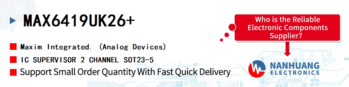 - MAX6419UK26+ Maxim Integrated, IC SUPERVISOR 2 CHANNEL SOT23-5, Integrated Circuits (ICs)~PMIC - Supervisors