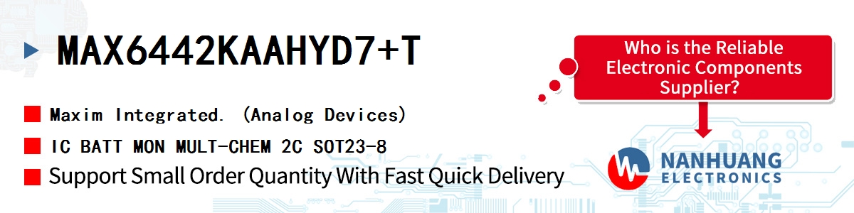 - MAX6442KAAHYD7+T Maxim Integrated, IC BATT MON MULT-CHEM 2C SOT23-8, Integrated Circuits (ICs)~PMIC - Battery Management
