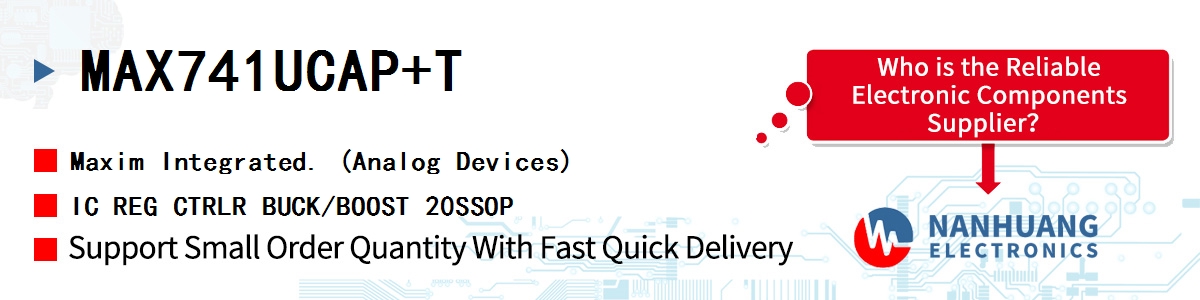 - MAX741UCAP+T Maxim Integrated, IC REG CTRLR BUCK/BOOST 20SSOP, Integrated Circuits (ICs)~PMIC - Voltage Regulators - DC DC Switching Controllers