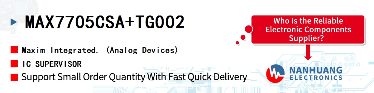 - MAX7705CSA+TG002 Maxim Integrated, IC SUPERVISOR, Integrated Circuits (ICs)~PMIC - Supervisors