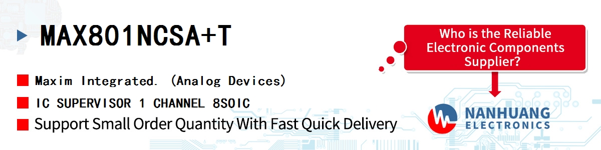 MAX801NCSA+T, Maxim authentic parts in stock from Maxim Integrated authorized distributors, order today, can ship immediately.