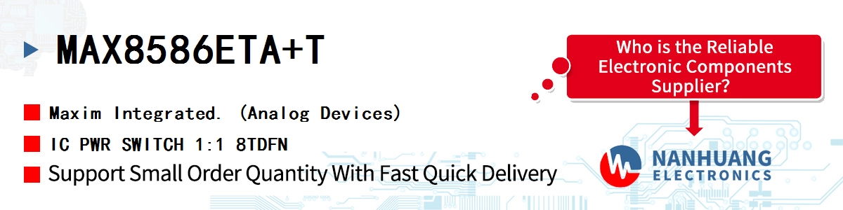 - MAX8586ETA+T Maxim Integrated, IC PWR SWITCH 1:1 8TDFN, Integrated Circuits (ICs)~PMIC - Power Distribution Switches, Load Drivers