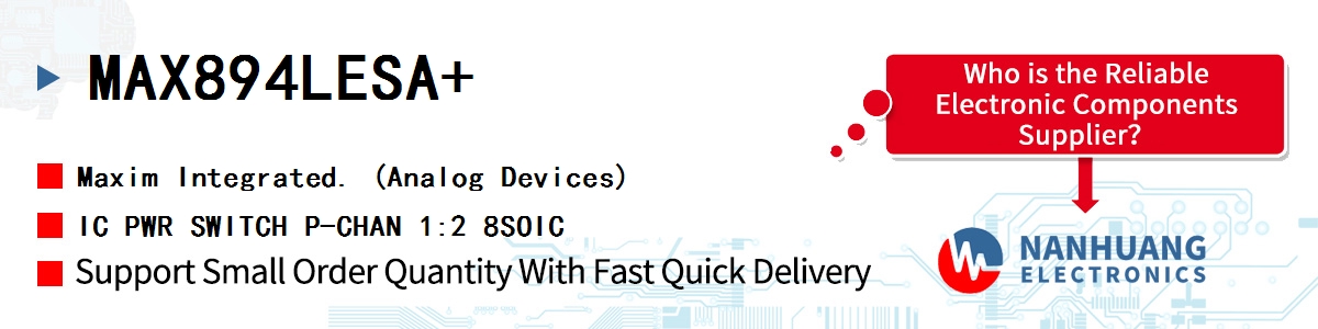 - MAX894LESA Maxim Integrated, IC PWR SWITCH P-CHAN 1:2 8SOIC, Integrated Circuits (ICs)~PMIC - Power Distribution Switches, Load Drivers