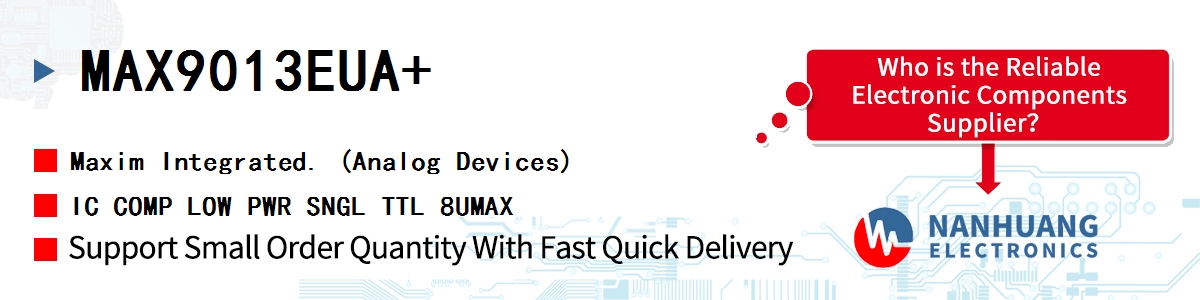 - MAX9013EUA+ Maxim Integrated, IC COMP LOW PWR SNGL TTL 8UMAX, Integrated Circuits (ICs)~Linear - Comparators