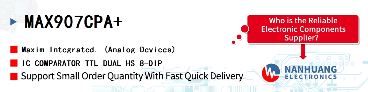 MAX907CPA, Maxim authentic parts in stock from Maxim Integrated authorized distributors, order today, can ship immediately.