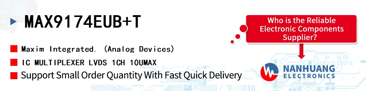 - MAX9174EUB+T Maxim Integrated, IC MULTIPLEXER LVDS 1CH 10UMAX, Integrated Circuits (ICs)~Interface - Signal Buffers, Repeaters, Splitters