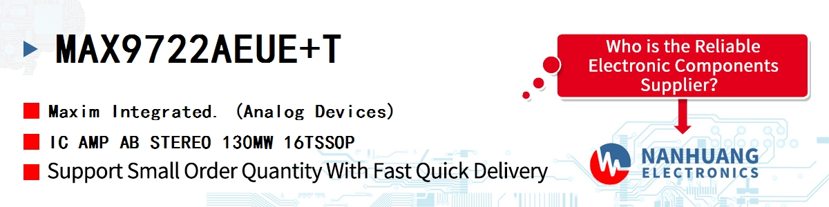 - MAX9722AEUE+T Maxim Integrated, IC AMP AB STEREO 130MW 16TSSOP, Integrated Circuits (ICs)~Linear - Amplifiers - Audio