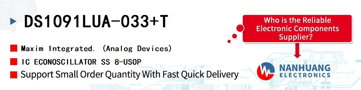 DS1091LUA-033+T, Maxim authentic parts in stock from Maxim Integrated authorized distributors, order today, can ship immediately.
