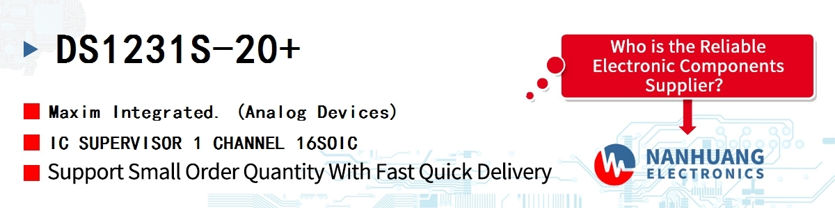- DS1231S-20 Maxim Integrated, IC SUPERVISOR 1 CHANNEL 16SOIC, Integrated Circuits (ICs)~PMIC - Supervisors
