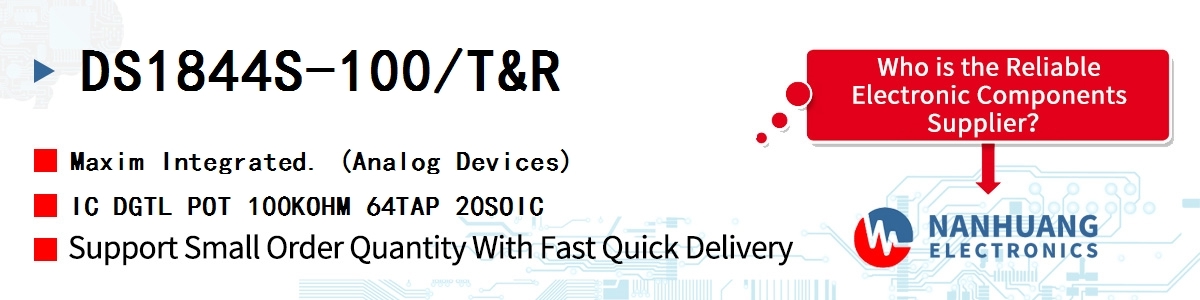 DS1844S-100/T&R, Maxim authentic parts in stock from Maxim Integrated authorized distributors, order today, can ship immediately.