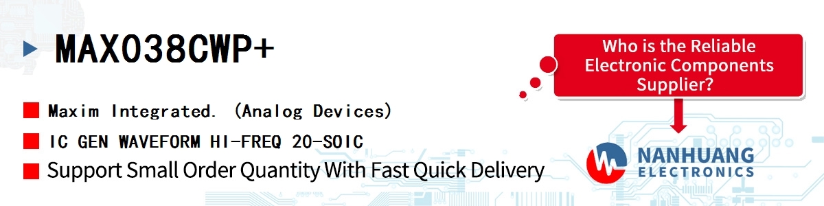 MAX038CWP, Maxim authentic parts in stock from Maxim Integrated authorized distributors, order today, can ship immediately.