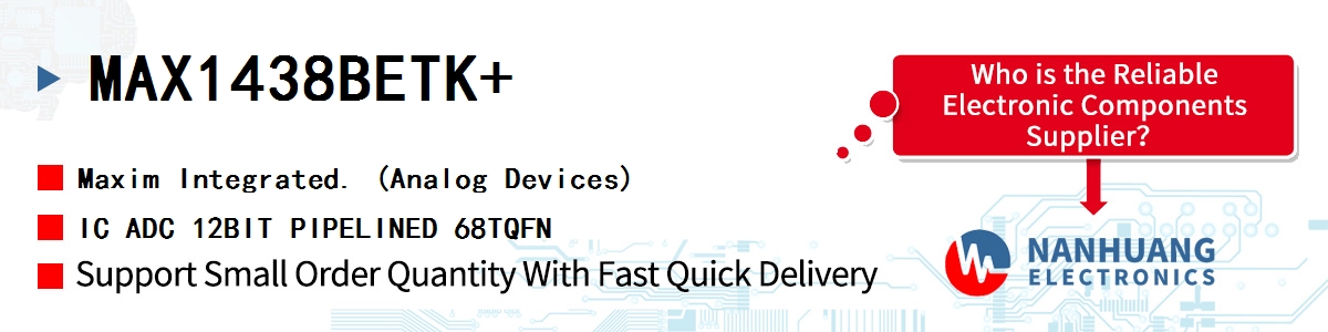 - MAX1438BETK+ Maxim Integrated, IC ADC 12BIT PIPELINED 68TQFN, Integrated Circuits (ICs)~Data Acquisition - Analog to Digital Converters (ADC)