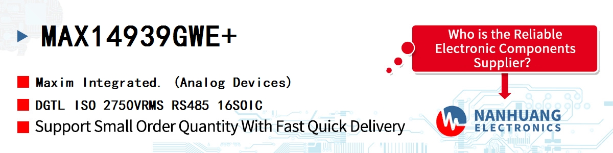 - MAX14939GWE+ Maxim Integrated, DGTL ISO 2750VRMS RS485 16SOIC, Isolators~Digital Isolators
