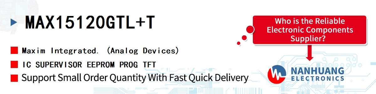 - MAX15120GTL+T Maxim Integrated, IC SUPERVISOR EEPROM PROG TFT, Integrated Circuits (ICs)~PMIC - Supervisors