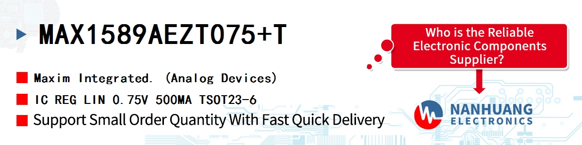 - MAX1589AEZT075+T Maxim Integrated, IC REG LIN 0.75V 500MA TSOT23-6, Integrated Circuits (ICs)~PMIC - Voltage Regulators - Linear