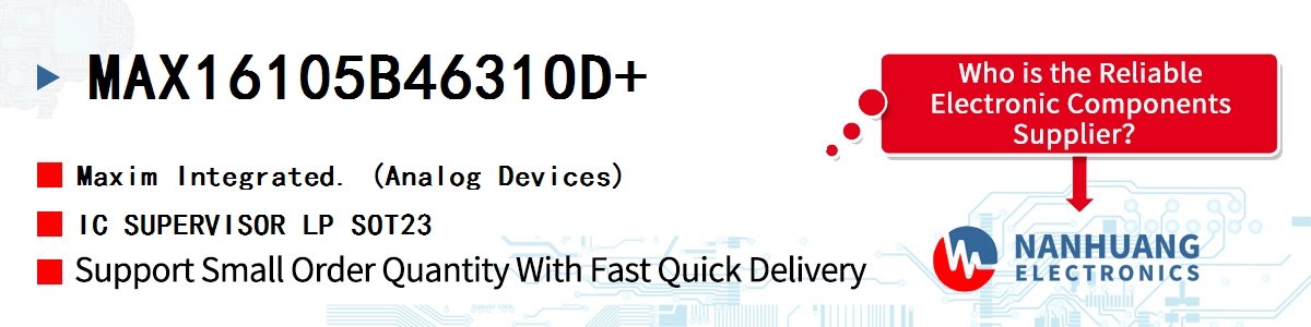 - MAX16105B4631OD+ Maxim Integrated, IC SUPERVISOR LP SOT23, Integrated Circuits (ICs)~PMIC - Supervisors