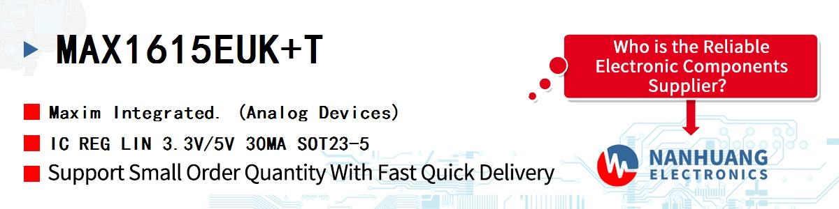 - MAX1615EUK+T Maxim Integrated, IC REG LIN 3.3V/5V 30MA SOT23-5, Integrated Circuits (ICs)~PMIC - Voltage Regulators - Linear