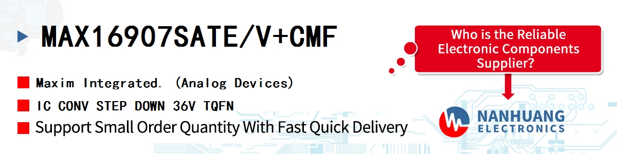 - MAX16907SATE/V+CMF Maxim Integrated, IC CONV STEP DOWN 36V TQFN, Integrated Circuits (ICs)~PMIC - Voltage Regulators - DC DC Switching Regulators
