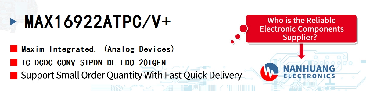 - MAX16922ATPC/V+ Maxim Integrated, IC DCDC CONV STPDN DL LDO 20TQFN, Integrated Circuits (ICs)~PMIC - Power Management - Specialized