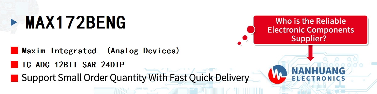 - MAX172BENG Maxim Integrated, IC ADC 12BIT SAR 24DIP, Integrated Circuits (ICs)~Data Acquisition - Analog to Digital Converters (ADC)
