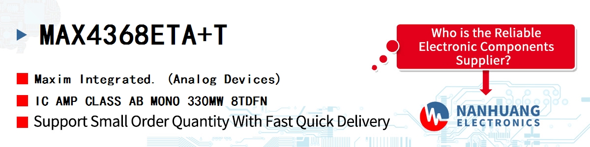 - MAX4368ETA+T Maxim Integrated, IC AMP CLASS AB MONO 330MW 8TDFN, Integrated Circuits (ICs)~Linear - Amplifiers - Audio
