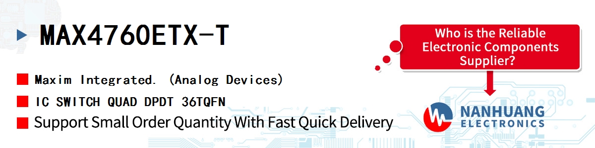 - MAX4760ETX-T Maxim Integrated, IC SWITCH QUAD DPDT 36TQFN, Integrated Circuits (ICs)~Interface - Analog Switches, Multiplexers, Demultiplexers
