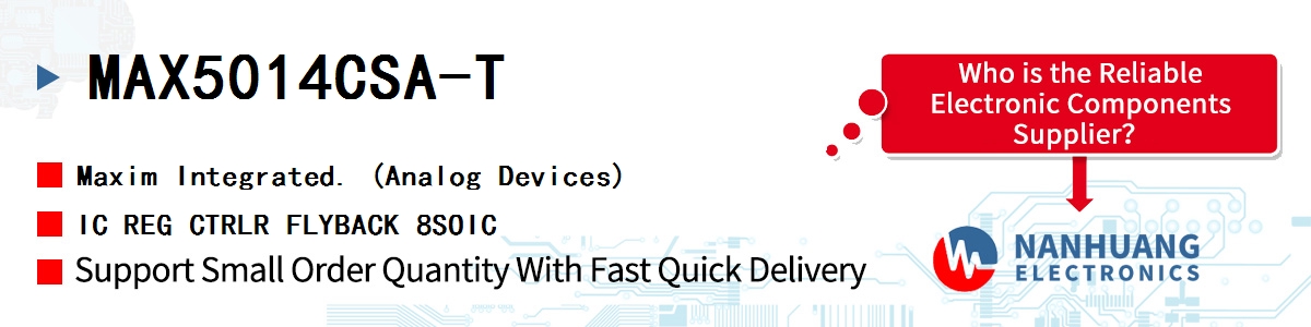 - MAX5014CSA-T Maxim Integrated, IC REG CTRLR FLYBACK 8SOIC, Integrated Circuits (ICs)~PMIC - Voltage Regulators - DC DC Switching Controllers
