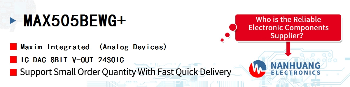 - MAX505BEWG Maxim Integrated, 8-BIT DAC, Integrated Circuits (ICs)~Data Acquisition - Digital to Analog Converters (DAC)
