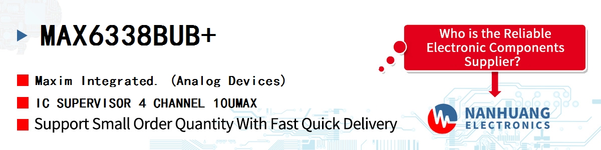 - MAX6338BUB+ Maxim Integrated, IC SUPERVISOR 4 CHANNEL 10UMAX, Integrated Circuits (ICs)~PMIC - Supervisors