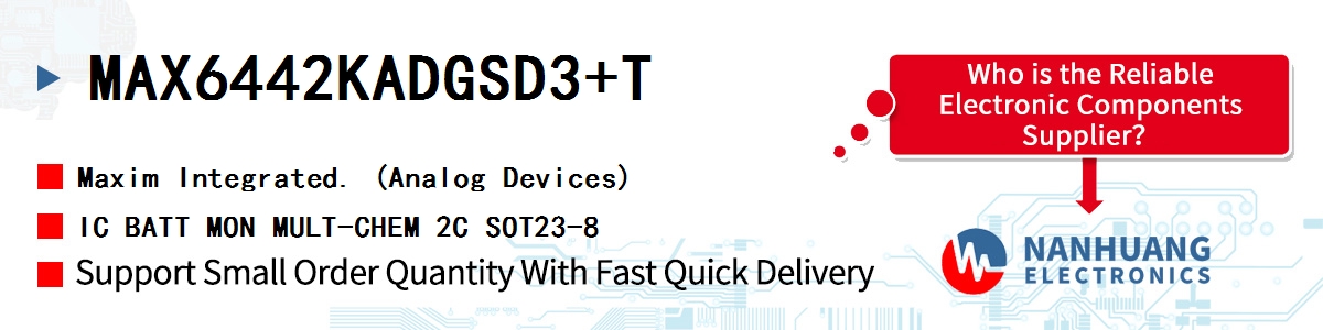 - MAX6442KADGSD3+T Maxim Integrated, IC BATT MON MULT-CHEM 2C SOT23-8, Integrated Circuits (ICs)~PMIC - Battery Management