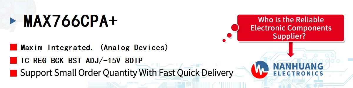 - MAX766CPA Maxim Integrated, IC REG BCK BST ADJ/-15V 8DIP, Integrated Circuits (ICs)~PMIC - Voltage Regulators - DC DC Switching Regulators
