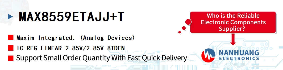 - MAX8559ETAJJ+T Maxim Integrated, IC REG LINEAR 2.85V/2.85V 8TDFN, Integrated Circuits (ICs)~PMIC - Voltage Regulators - Linear