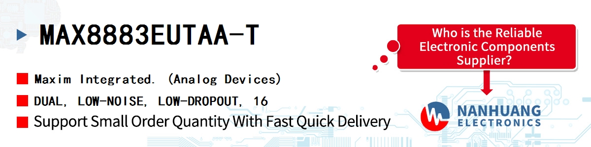 - MAX8883EUTAA-T Maxim Integrated, DUAL, LOW-NOISE, LOW-DROPOUT, 16, Integrated Circuits (ICs)~PMIC - Voltage Regulators - Linear Regulator Controllers